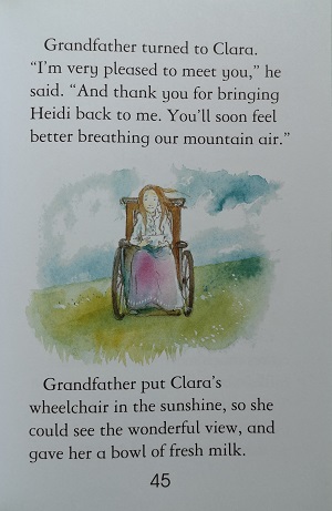 Heidi loves living with her grandfather, high in the mountains. But then her aunt arrives to drag her off to the stifling city. "I'll never forget Grandfather," Heidi promises herself.“One day I'll come back to him.”