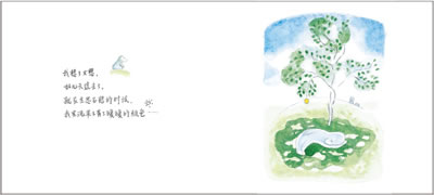 “每天早上,我都要去看看,一棵我很喜欢的小树。一天,小树的枝头,朝我开出一朵花……它对我说:“这是送给你的。”然后,它又说:“如果你不急着摘它,如果你再等等,它就会变成一个果子。”这个可爱的小不点左右摇摆,犹豫不定。最后,它选择相信小树,耐心地等待,最终得到了美好的报偿。