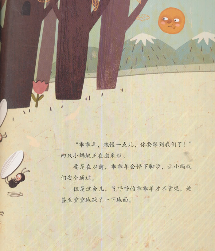 ⊙《乖乖羊的坏脾气》(控制情绪)乖乖羊是一只脾气很坏的小黑羊。有一天,她因为一件小事跟羊妈妈发了好大一通脾气。她粗鲁地推开了羊妈妈,踢翻了正在骑木马的小松鼠,还踩散了小蚂蚁的米粒。可是,当遇到比自己脾气还暴躁的小狮子时,乖乖羊发现乱发脾气真可怕!接下来,她会怎么做呢?*乖乖羊的坏脾气闹得小伙伴们都不愉快,可见控制情绪很重要! —— 许萍萍 冰心儿童文学奖得主