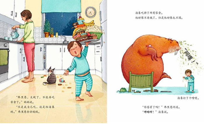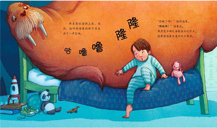 弗里恩今晚要一个人睡觉了,但是有一个很大的问题——他的新床上有一只海象!海象不肯好好睡觉,它又吃又喝,还打起喷嚏,好像生病了,这可忙坏了一心想要照顾好它的弗里恩!为了应对这个体型庞大的新朋友,大家度过了一个忙碌又混乱的晚上,*终,所有人都能安然入睡了吗?
