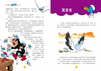 记忆有时候真是靠不住的。一连串的误会让我对蓝精灵的来历产生了极大的好奇心,开始四处搜罗相关的资料,甚至很有幸弄到了一本英文版的“蓝精灵”漫画《魔笛》(TheSmurfs and the MagicFlute),它很可能就是*早出现“蓝精灵”的那个漫画故事,*初的故事是1958年诞生于比利时的法语版,名为《六孔笛》。那其实是个相当长的故事,64页的漫画小说,长度和阅读难度与《丁丁历险记》相仿,但故事背景设在中世纪巫术盛行的城堡时代。主人公其实是一对人类活宝组合——乔汉与皮威(Johan Peewit),故事发展到第24页时小蓝精灵才露了一下脸,直到第40页后它们才闪亮登场。