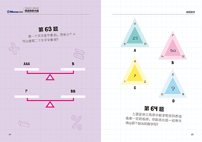 大脑的系统训练要从小开始。通过这套书的题目,可以从观察力、专注力、反应力、逻辑性、发散性等方面综合训练孩子们的脑力。门萨是高智商的象征,门萨的题目趣味性强,非常适合孩子们从小接触脑力项目,练就“最强大脑”。