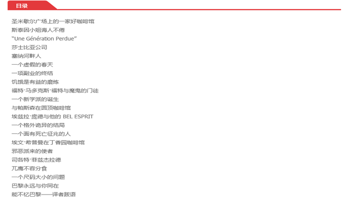 李文俊翻译的《忆巴黎——不固定的圣节》是海明威晚年所著、并在其死后出版的回忆录。在这本书中,海明威追述了自己年轻时旅居巴黎的一段岁月。一战结束后,海明威在康复后以驻欧记者的身份来到巴黎,与妻子哈德莉过着艰苦却快乐的生活。我们可以看到海明威是如何穿梭于巴黎的各个咖啡馆中,在西尔维娅.比奇的书店里赊账借书,流连于赌马场中,同时专注于自己的小说创作。《忆巴黎——不固定的圣节》中,庞德、斯泰因夫人、乔伊斯、菲茨杰拉德等文人雅士的身影随处可见,同样令人印象深刻的是塞纳河畔的风光景物。正如作者所说:“假如你有幸年轻时在巴黎生活过,那么此后一生中不论去到哪里,巴黎都会与你同在,因为巴黎是一个不固定的圣节。”