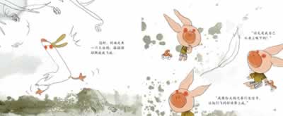 波波飞在金秋的草地上,发现了一片洁白的羽毛,他一心一意要找到羽毛的主人。可是问了喜鹊、问了白云、问了大雁,都说不是他们的羽毛。其实,那是大白鹅留给天鹅兄弟们的信号。这时,一群飞过的天鹅们降落下来,送给了波波飞另一根洁白的羽毛,波波飞好开心,一手拿一根白羽毛,感觉自己也成了一只会飞的小猪。