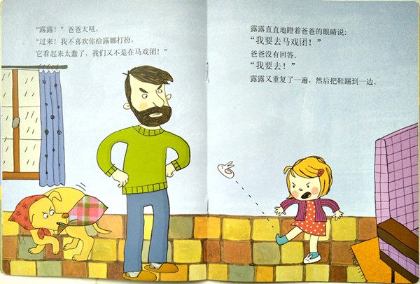 露露今天心情不好。她讨厌外面的雨天,她讨厌爸爸的小狗露娜,她尤其讨厌她的爸爸!每个人都有心情不好的时候,露露今天会怎么度过呢?