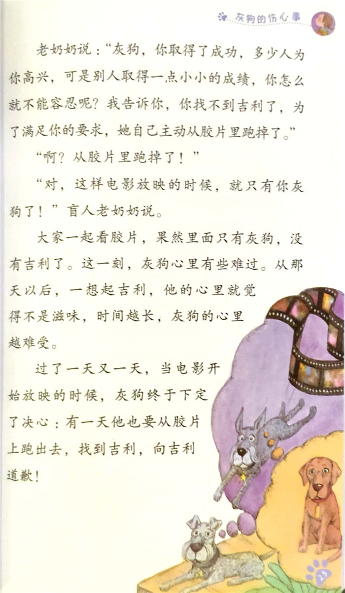 银幕上的那只正在奔跑的狗忽然停下来,看着小女孩说:你怎么又来看电影!小女孩惊呆了!她哆哆嗦嗦地走到银幕前,万万没有想到,一只真的狗爪子居然从银幕里伸出来。