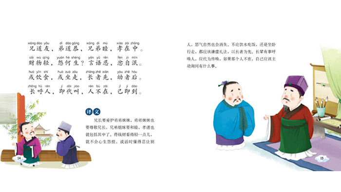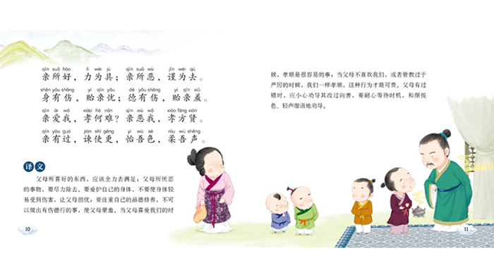 《弟子规》成书于清朝时期,它内容生动,教育意义浓厚,语言富于节奏和韵律,自问世以来,受到了我国历代儿童的喜爱,传唱不衰。“弟子”是指一切圣贤人的弟子,“规”就是规范。所以它是每个人,每一个学习圣贤经典,效仿圣贤的人都应该学的。《弟子规》贴近现代儿童的生活,有利于他们形成孝顺、诚信、勤学等中华民族的传统美德,养成健康、良好、有序的生活习惯,学习与人交往的礼节和礼仪。