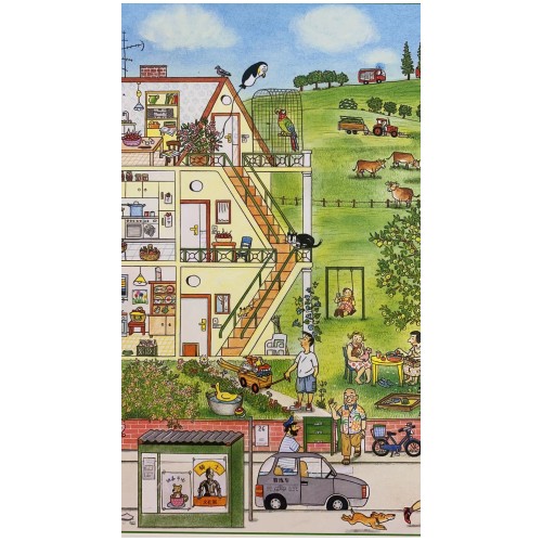 四季时光(中英双语)是适合低龄儿童阅读的中英双语绘本,展现了魏姆林根小镇七个代表性地点的人物、动物和事物,作者用一条道路连接起这七个地点,用画笔达到了摄影的效果,用静态勾勒出动感的故事,时间在画面上流淌,人物也在画面上穿行,他们从街道的这头走到那头,从《寒冬》走到《暖春》,走过《盛夏》,进入《凉秋》,来到《月夜》。你会发现相同的角色在不同的场景和季节里延续着各自的故事:冬天大着肚子的孕妈妈春天推着婴儿车里的宝宝去购物;春天降生在农场的猪宝宝夏天长大了;夏天买裙子的女孩秋天穿起了新衣;施工多时的幼儿园秋天终于要开园;冬天还营业的小摊春天关门了……书的每个角落都有有趣的故事正在发生,作者以时间为纬线,穿珍珠一样串联起了小镇的人情百态、市井风俗,带领孩子用一双观察发现的眼睛、好奇善意的眼睛去看世界。干净、稚气的画面充满勃勃生机和融融暖意。本书还是一本遍布“机关”的多功能绘本,可供孩子生活认知、视觉发现、图像阅读、逻辑推理、语言表达、单词学习。