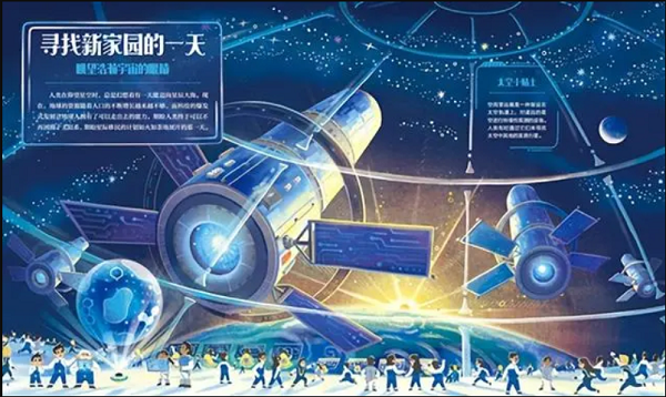 “太空的一天”系列以太空中的“一天”为时间线,给读者讲述了20 余个航天器在太空中的一天的故事。本套书为孩子呈现了浪漫、广袤又充满神秘的宇宙画卷,用拟人化的手法展现了在太空中工作和旅行的航天器角色,用故事串联起航天科普知识,让孩子在唯美清新的插画、幽默风趣的故事中学习前沿的科学文化知识。 《太空幻想的一天》讲述了未来人类在面临地球人口巨增、资源不足的情况下,走向太空,探索新家园的故事。