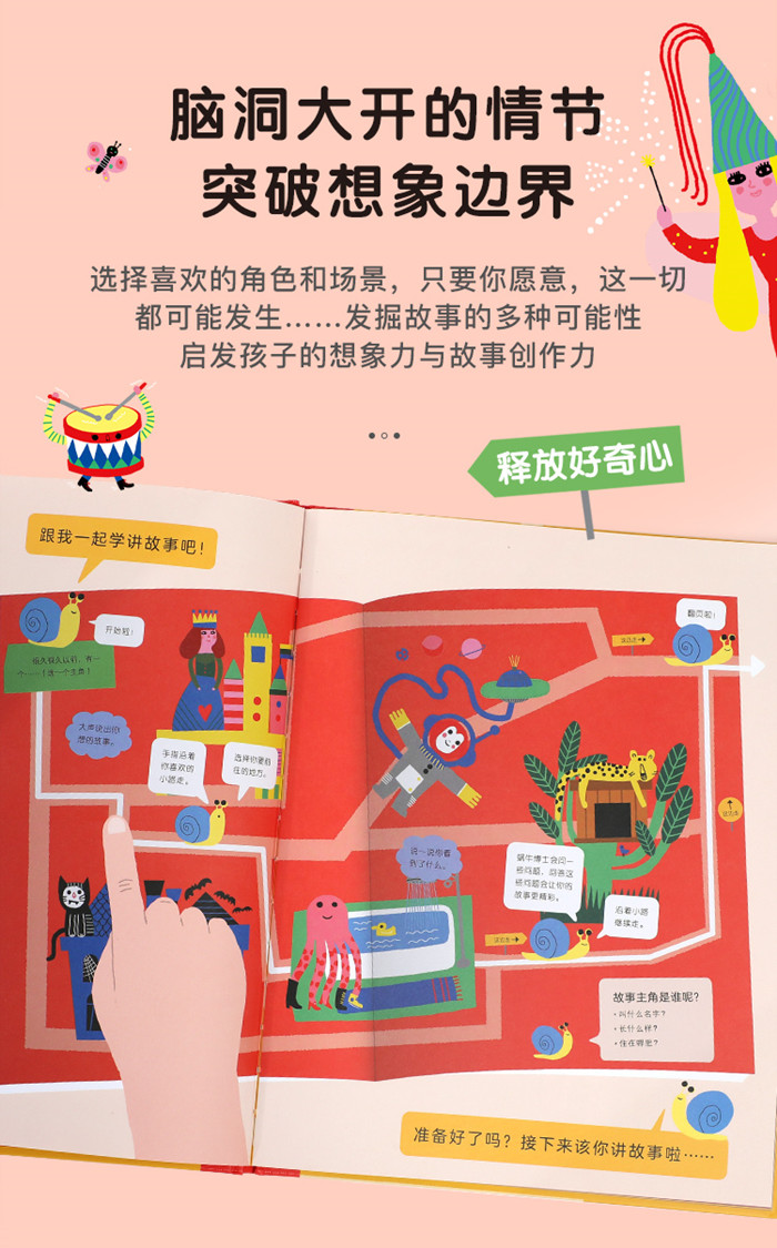 打开这本书,进入一个奇幻的世界。在这里,公主可以乘着宇宙飞船去拜访外星人,章鱼先生会遇到一位神秘的老婆婆……只要你愿意,这一切都可能发生,你将会遇到谁?你将会去哪里?接下来你会做什么?都由你自己来决定……故事中所有一切都由你来决定。选择喜欢的角色和场景,仔细观察,尝试描述,开启看图学表达之旅;根据书中提示构思故事,逻辑严谨,妙趣横生。