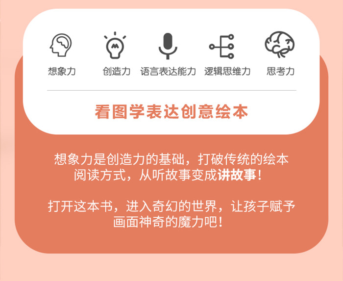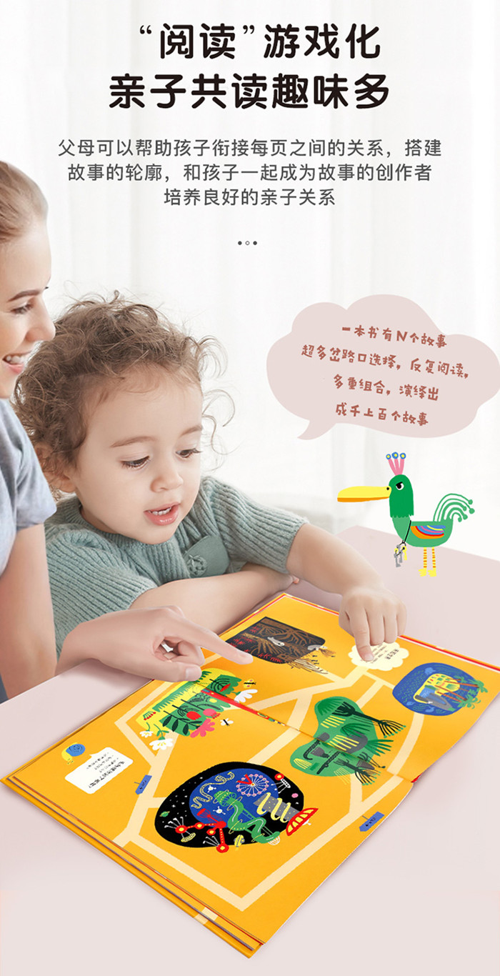 1. 这是一本属于孩子自己的故事书。没有固定的情节和表述,它给孩子提供了一个自由创作的空间,他们完全可以选择自己喜欢的角色和场景来创作故事。充分锻炼孩子的想象力和表达能力。 2. 这本书能够引起孩子看图学表达的兴趣。本书由13个主题单元构成故事的开端、发展、高潮和结尾。孩子选择主角后,就可以开始一段精彩纷呈的口头作文之旅。 3. 如果孩子不知道改怎么讲述故事,每个单元的右下角都有一个阅读指引,帮助孩子理清思路,顺利讲出一个妙趣横生的故事。 4. 这是一本很适合亲子阅读的书,父母可以帮助孩子去衔接每页之间的关系,和孩子一起搭建故事的轮廓,和孩子一起做故事的创作者。培养良好的亲子关系。