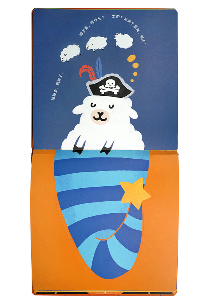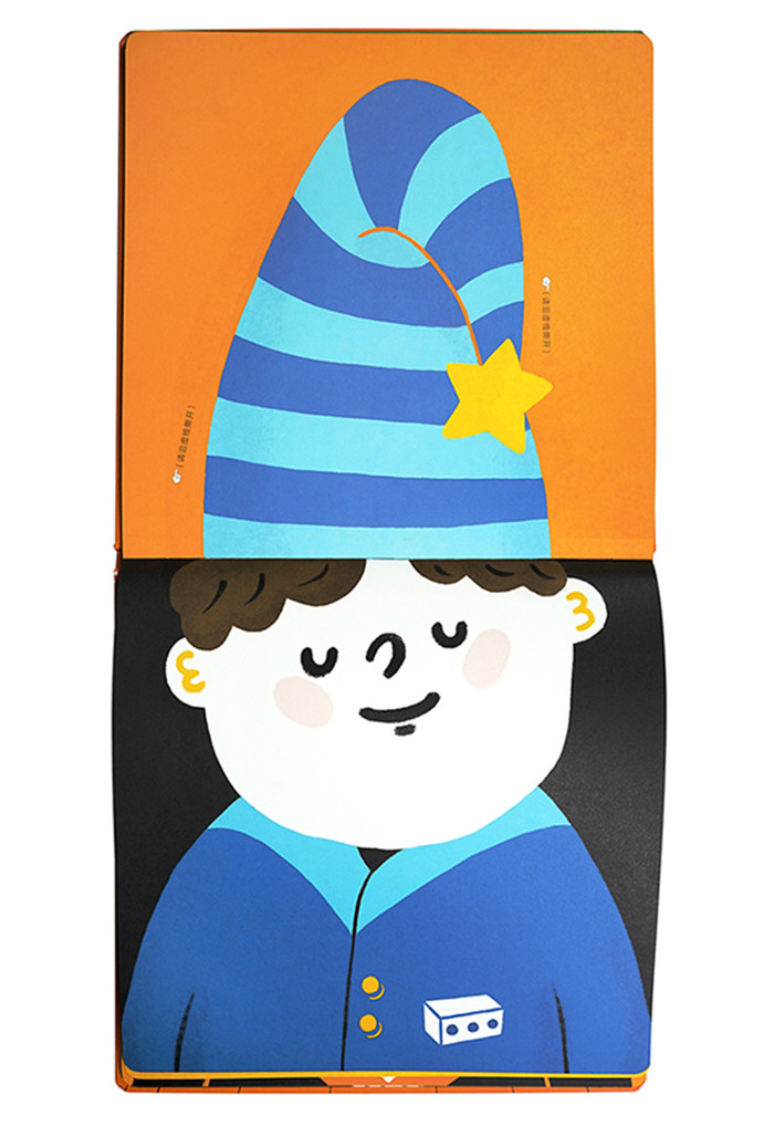 书的设计极具巧思,前一页帽子里作为点缀的小帽子,会成为后一页遮挡谜底的大帽子。