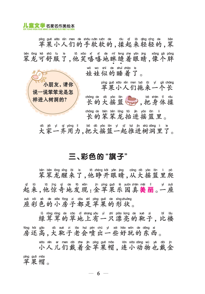 丛书选取了30位知名儿童文学作家原创的优秀儿童文学作品,有长篇的,也有短篇的,以寓言、童话故事为主,每位作家一本书,共30本。故事内容符合儿童心理特点。文中好的词语都变了颜色加以突出,加深读者对一些精彩词语的记忆,对于经常出现的多音字或变声字加点,巩固读者对拼音的掌握,并且随文附加一些引人思考的小问题,有利于启迪儿童智慧,培养儿童积极健康的思想品质。优秀的儿童故事配上精美的彩色插图,文图相映成趣,为孩子们以后的文学素养进行了一个良好的启蒙。
