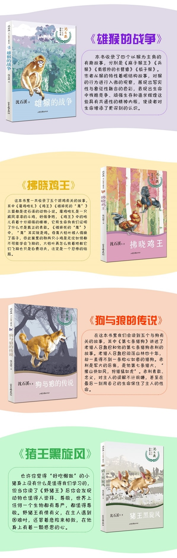 本套书精选沈石溪老师作品中关于十二生肖动物经典故事的集合,经调研沈石溪老师给每个生肖的动物都有一篇类似鼠王、牛王的名称,主打动物之王的概念,满足孩子的猎奇心,增添套系本身的传奇性和神秘感,带给小读者一场奇妙的冒险之旅与想象力的饕餮盛宴。