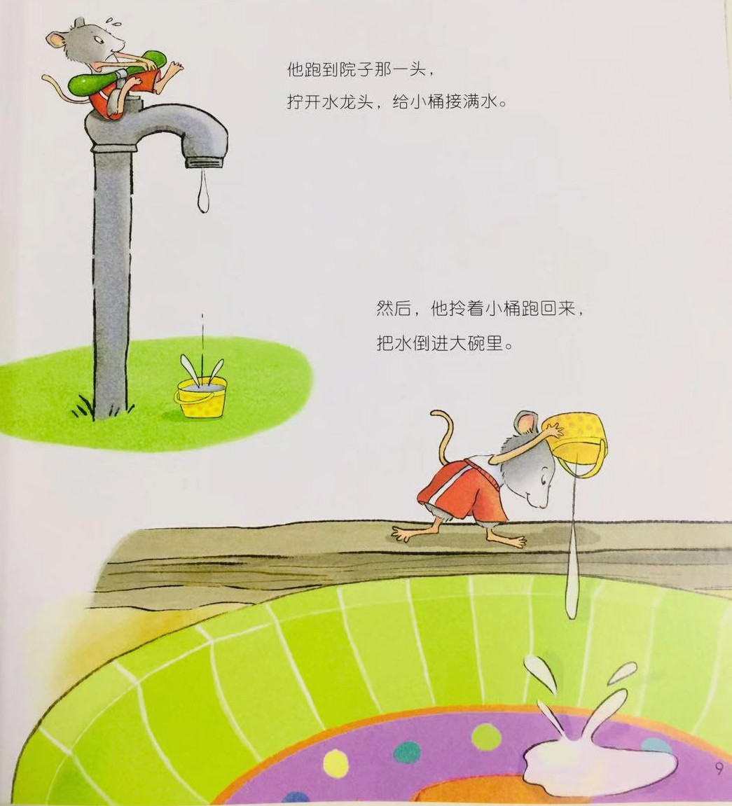 “鼠小弟爱数学”系列全套9册,每个故事都呈现了一个基础数学概念,数字大小、顺序、空间运动、容量和体积等,都是数学启蒙的重要主题。这些数学概念自然而然地融入到了小老鼠们的日常生活中去:他们用表示位置的词语教蜗牛玩把戏;在雨天数数,发现客人数量多得惊人;在炎热的夏天里,用不同容量的东西接水灌满游泳池……孩子们在被这些趣味十足的故事吸引的同时,会不知不觉地主动思考,和小老鼠们一起寻找解决问题的办法,从而激发他们对数学学习的兴趣,和鼠小弟一样爱上数学!