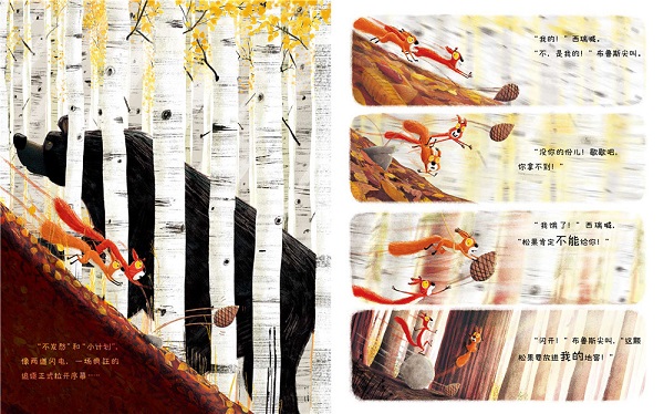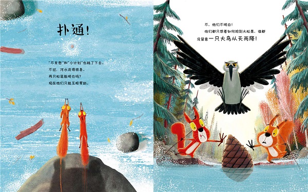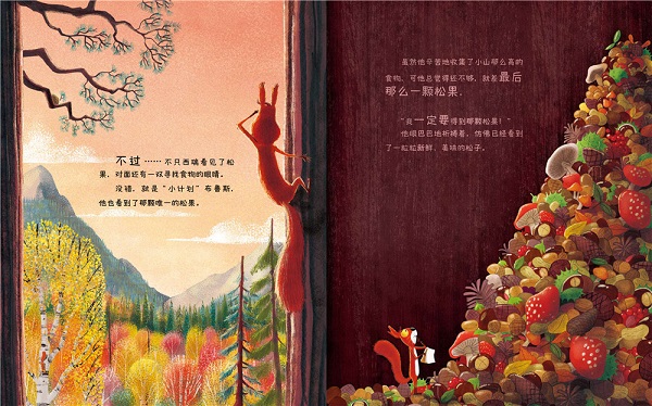 《这颗松子是我的》由多次荣获凯特·格林威奖的黄金搭档雷切尔·布莱特和吉姆·菲尔德共同创作,是一册关于友谊和分享的故事,讲述了两个个性迥异的松鼠看上了同一颗松子,为了夺得松子你争我抢最后掉进瀑布的故事。有趣的是,当掉进瀑布后,他们才意识到争抢是多么可笑,从此他们学会了分享,也得到了更多快乐。故事幽默风趣,贴近儿童生活和心理发展特征,小读者通过阅读本书,体验到了与人分享的乐趣,也认识到了朋友的真谛。