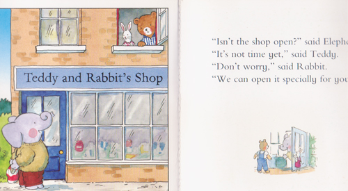Teddy and Rabbit run a little shop that stocks all sorts of things. They're always ready to help their friends, such as the time when Elephant forgot his shopping list.