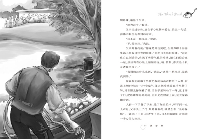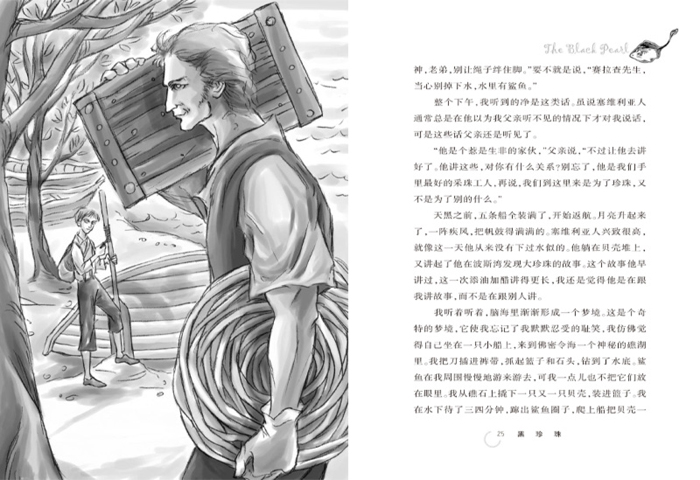 《黑珍珠》是一部十分简洁的小说。它讲述了拉蒙在“恶魔魟鱼”洞里采到一颗硕大无比的黑珍珠