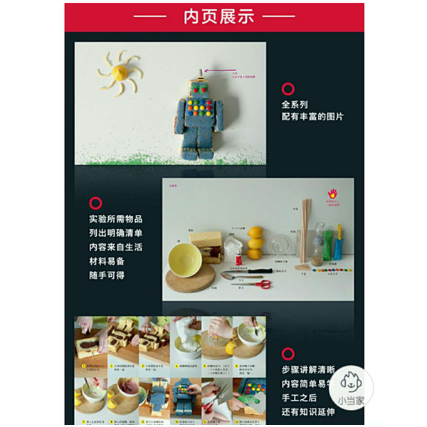 ●全系列配有丰富的图片,步骤讲解清晰、内容简单易学。每个手工之后,还有知识延伸,让孩子理解更全面的内容