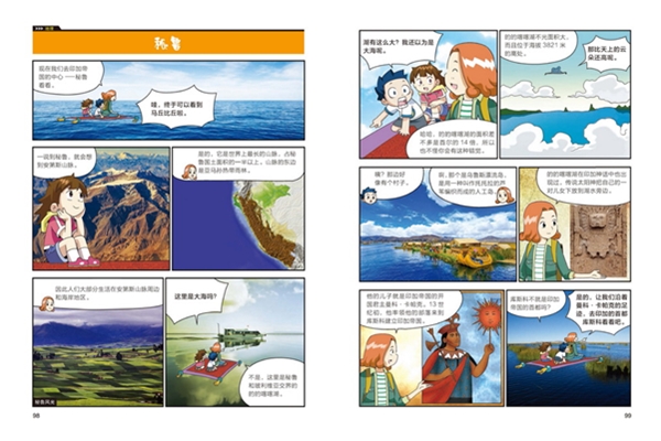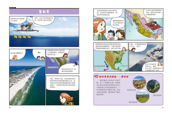 《大英儿童漫画百科》是韩国波波讲故事项目团队根据大英百科全书公司出版的《大英百科全书》改编而成,综合中小学阶段的教学内容,采用最新的图形和绘制技术为中小学生精心打造的趣味百科全书。《大英儿童漫画百科》以贴近儿童思维和心灵的方式呈现,以孩子们的兴趣点为中心,集知识性、趣味性、实用性于一体,全方位满足青少年的知识需求。本册的知识主题是“地理”,讲述了美洲各国的人文地理知识,包括各国的经济、文化特色以及自然景观等。在本册的故事中,喜欢球类运动的罗云和行动派少女美琪在地理学博士安遥静的带领下,坐上安博士的神奇飞毯,前往美洲的各个国家,包括墨西哥、美国、巴拿马、古巴、巴西、阿根廷等,充分领略了美洲国家的独特文化和风土人情。故事内容丰富有趣,知识性强,寓教于乐,带领孩子开启愉快多样的地理学习体验。