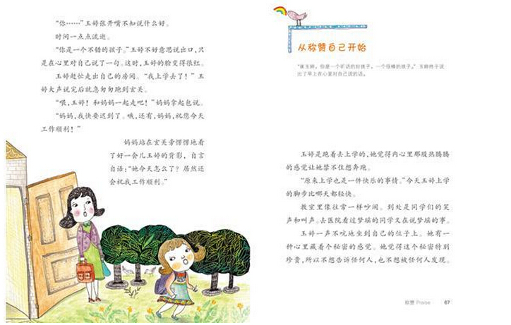 《最励志校园小说第三辑》之《赞美改变你》让孩子学会称赞别人及自己,拥有健康阳光的心态。主人公毒舌女玉婷平常犀利无比,最讨厌的就是一天到晚嘴上抹蜜的感叹词梦瑶。梦瑶病了,在病中,她给玉婷写来七封长信,告诉她自己关于赞美的七个彩虹秘方:从赞美自己开始,从关心开始赞美,赞美多多益善,从小事开始赞美,由衷地感谢,好好倾听,如果你想得到某人的称赞,那你就要称赞那个人。学会了赞美的玉婷变得快乐了,她和梦瑶成了好朋友。