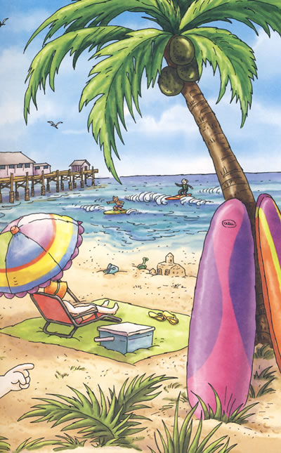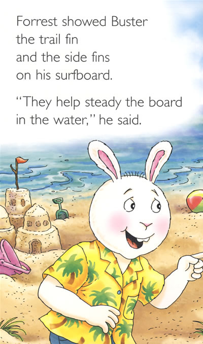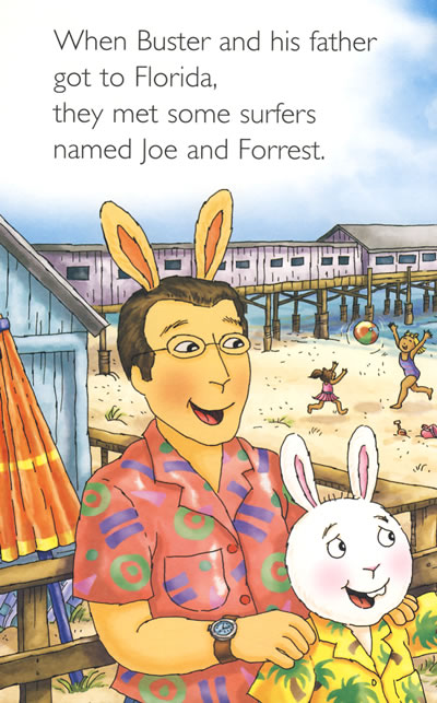 In Buster Catches a Wave, Buster and his dad travel to Cocoa Beach, Florida and learn about surfing and ocean life.