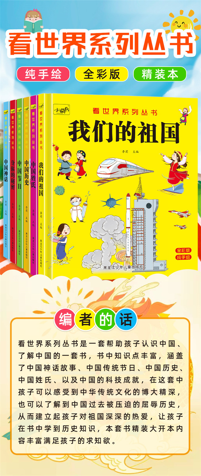 看世界系列从书是一套帮助孩子认识中国,了解中国的一套书,书中知识点丰富,历史脉络清晰,在这本中孩子可以了解到中国历史上的重大事件也可以深切的感受到中国过去被压迫的屈辱历史,从而建立起孩子对祖国深深的热爱,让孩子在书中学到历史知识,本套书精装大开本内容丰富满足孩子的求知欲。