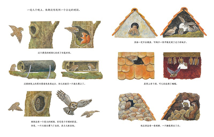 本书讲述了猫头鹰的成长历程。猫头鹰小伙成年之后,要独自一人在外闯荡,准备成家立业。首先他要寻找一个合适的住处,住处需要有丰足的食物和舒适的环境。安家不是件容易的事,他找啊找,历尽千辛,终于找到理想的家。然后他要结婚,生子,为孩子的健康成长各处奔忙。年幼的猫头鹰也在逐渐长大,*后离开父母,独自寻找他们自己新的家园。
