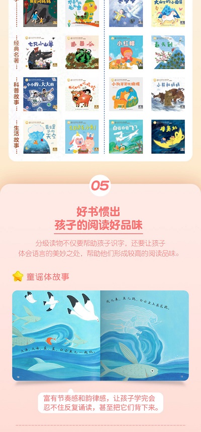 《小羊上山儿童汉语分级读物》是汉语分级读物领军人孙蓓老师联合靠前一线教育专家、成熟绘本作者和插画师为4~7岁处于识字、阅读敏感期的孩子匠心编写的中国原创汉语分级读物书系。本系列依据新版小学语文课程标准,先用高频核心汉字设定各级字表,后创作全新图画故事,以帮助孩子零基础学会独立阅读,轻松度过幼小衔接关键期。丛书根据孩子的阅读字量范围分为14个级别,其中前8级为学龄前儿童阅读字量,后6级为小学1-3年级儿童阅读字量。全套丛书拥有完整、完善的线上、线下辅助学习体系,每一级均提供配套的阅读指导课、阅读精读课和音频课,以及家长指导手册等,用科学的方法全面引领孩子走向阅读的殿堂。对应的《小羊上山儿童汉语分级读物 级》,故事生动丰富且寓教于乐,涵盖原创故事、经典童话、科普和生活类故事,语言文字优美,富有韵律,插画细腻有质感,使孩子在快乐的阅读中潜移默化地学会适合他年龄的汉字,帮助孩子收获自信心和成...……