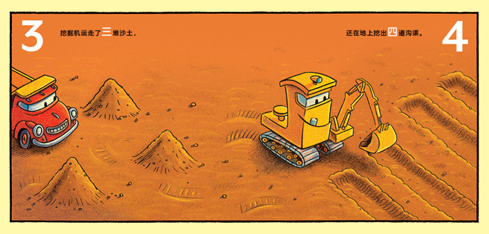 挖掘机、推土机、起重机、自动倾卸卡车、水泥搅拌车,孩子喜欢的“好厉害的车”,这里都有!他们各有所长、团结合作,他们克服困难,建造高楼,他们在辛劳一天后,伴着摇篮曲,乖乖去睡觉…… 挖掘机教你学数字 今天,挖掘机要在建筑工地大展身手!没问题,挖掘机从不让人失望。当挖掘机开始加速后,我们可以跟随他从1数到10。准备好了吗?1、2、3……开始! 起重机教你学反义词 起重机今天好辛苦,他上上下下、跑来跑去、举起放下……度过了充实又忙碌的一天。当白天变成夜晚时,在起重机的世界里,有很多有趣的反义词等你来发现! 推土机教你学形状 是谁让建筑工地井然有序?用形状的魔术,把坑坑洼洼的建筑工地变得整整齐齐。是推土机!推土机变出了哪些形状?猜猜看! 水泥搅拌车教你学字母 忙忙碌碌的建筑工地上,回荡着一曲欢快的字母歌。水泥搅拌车从A唱到Z,不仅让工作变轻松,还能帮小...