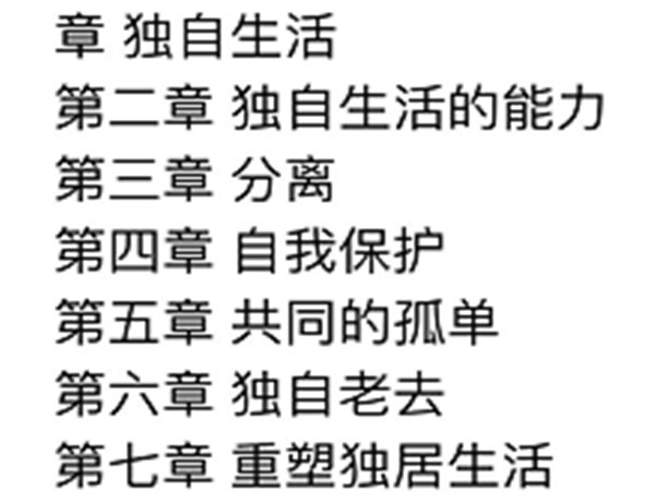 克里南伯格以他前瞻性的研究为基础,探索了单身社会的崛起,以及这一现象给我们的社会文化、经济、政治所带来的巨大影响。尽管传统思想一直告诫我们,独自生活将导致孤独和与世隔 的孤立,克里南伯格却向我们揭示了, 大多数单身者正热忱地投身社会与社交生活中,他们比同龄已婚人士 热衷于外出就餐、锻炼身体、参与艺术及音乐课程、公众活动、演讲以及公益活动。甚至有证据表明,比起与配偶居住的已婚人士,独自生活的人们身心 为健康,而他们都市公寓的生活方式,相较郊区独栋家庭住宅,也 为绿 保。 ......