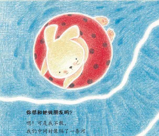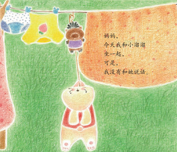 《我和小溜溜坐一起》讲的是小兔子和小猪小溜溜的友谊故事。在班上,小兔子和小溜溜是同桌。回家后,小兔子告诉妈妈,他和小溜溜坐一起,却没有和小溜溜说话。妈妈问:“你想和她做朋友吗?”小兔子说想,但是不敢,他觉得和小溜溜之间好像隔了一座山。妈妈教他,可以爬到山头向小溜溜招手。每一天,小兔子都告诉妈妈,他不敢和小溜溜说话,妈妈总是耐心地给他建议。小兔子最终能和小溜溜成为好朋友吗?故事非常契合孩子的心理,给孩子的勇气和力量,让他们明白友谊的美好与纯粹。