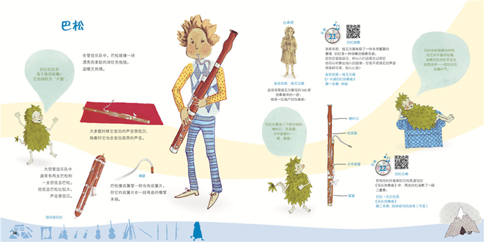 书中的文字浅显易懂,对乐器的描述更是风趣幽默又不失精准。这样的内容安排不仅能让孩子感受到古典音乐的可爱之处,也能让家长对古典音乐有进一步的了解,甚至可能会使人感慨:“古典音乐原来是这样的!”