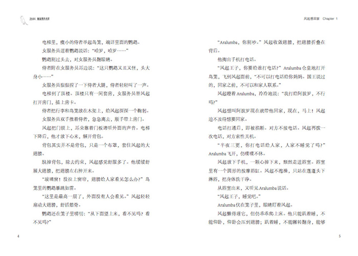“风起王子,你要给谁打电话?”Aralumba仓皇地打开鸟笼,飞到风起面前,“不可以打电话给你妈妈。国王说过的,回家之前,不可以和家人联系。”