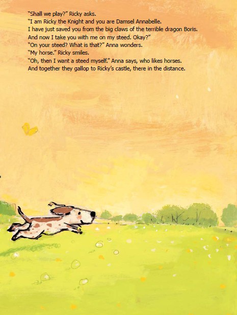 奇奇最喜欢去老橡树那儿,每当他躺在树下,闭上眼睛,他总会和自己的梦想相遇。今天,他梦到自己成了一个骑士。面对喷火龙从四面八方发起的攻击,奇奇毫无惧色,并且把他们都打败了……突然,一阵呼救声惊醒了奇奇的千秋大梦,原来是邻居家的狗狗鲍里斯把安妮给吓哭了。奇奇很轻松地驯服了这个“怪龙鲍里斯”,还邀请安妮一起玩骑士和公主的游戏……