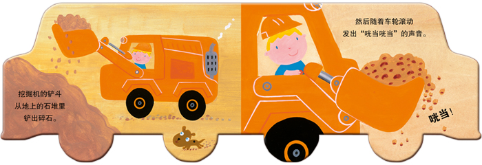 ◎创建属于自己的工地活动场景,用可以拆卸的拼装卡片和可站立的汽车造型的图书一起创造这个生动有趣的故事!