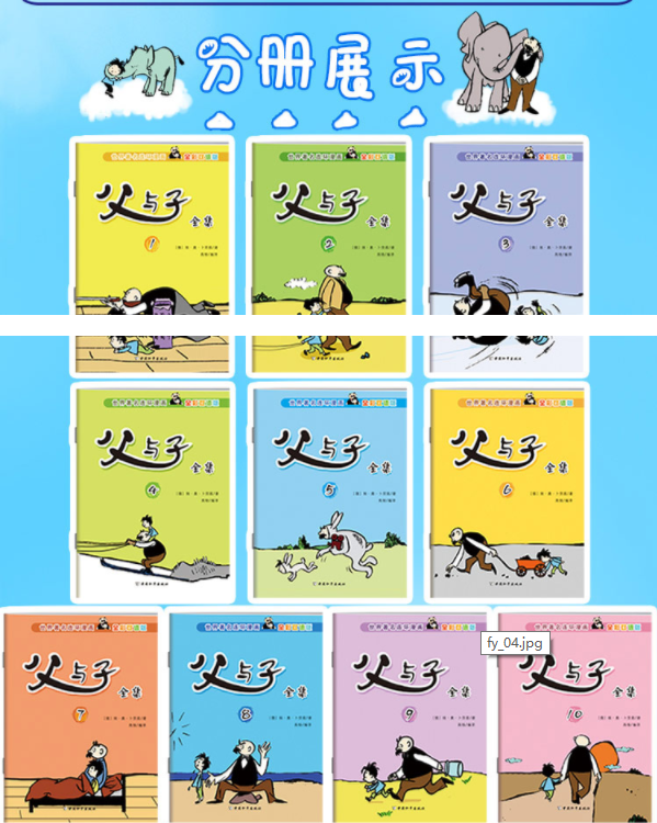 《父与子》 被誉为“德国幽默的象征”,讲述的是滑稽老爸与淘气儿子之间的生活趣事,一幅幅看似平凡的生活场景,却处处洋溢着暖暖的父子深情, 展现着父亲和儿子对温馨、自由、快乐生活的无比热爱。留着八字胡的父亲,对儿子的贪玩和小错误给了无限的包容,调皮与天真的儿子,为了给父亲惊喜,闹出了无数滑稽的闹剧。