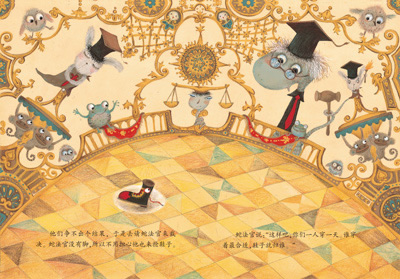 大家开始一边数着自己的脚趾头,一边据理力争。没长脚所以也就不会争鞋子的蛇法官出了个主意:每人穿一天,谁穿着合适,鞋子就归谁。但这也没解决问题,因为所有的动物穿上鞋子以后都洋相百出!蛇法官此时恍然大悟,觉得自己发现了问题的症结所在,于是带着大家一起去找这只鞋子“真正的主人”——但是,他的判断对不对呢?这只鞋子,又到底是谁的呢?