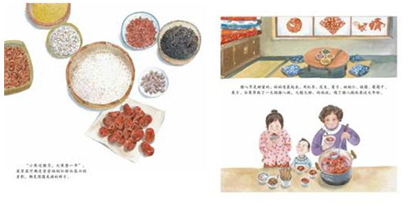 在图画书《冬。至》中,孟丽因为工作繁忙,已经五年没有回家过年了,在宝宝即将诞生的冬季里,回忆着仙鹤飛翔的故乡。跟随着点点滴滴的童年往事,身在上海的孟丽,心已经回到了东北老家。孩子满月之后,孟丽一家三口终于踏上了归乡之路。这一年辞旧迎新,不仅全家团圆,更多了一个可爱的新生命。
