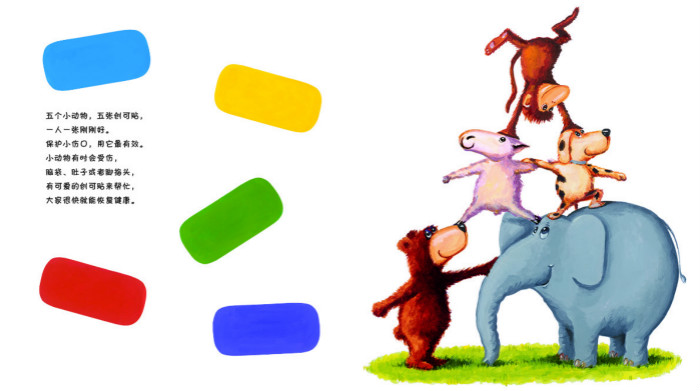 这是一本帮助孩子拥有自我保护力与身心治愈力的玩具书。 小狗想要跳过围墙,一不小心爪子受了伤;小猴正在荡悠悠,却不小心撞到了头……哎哟哟,好疼啊!这可怎么办?记住一个小诀窍,疼痛马上就走掉:快吹吹,安慰下,贴上创可贴!