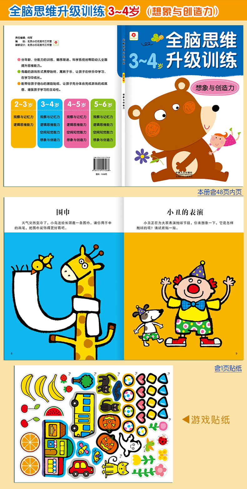 训练的内容包含了观察与记忆力训练、逻辑思维能力训练、空间知觉能力训练与想象和创造力训练。分年龄段、分能力的有针对性的训练,循序渐进、科学系统地帮助幼儿全面提升思维能力。