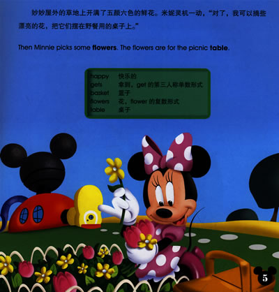 迪士尼英语“米奇妙妙屋智慧双语故事”系列采用中英双语不对称对照的方式。中文部分生动有趣,英文部分简单易懂,同时解决了孩子外语学习的意愿和能力问题。每个故事还有一个英语学习主题,并围绕这个主题设计了好玩的英语小游戏,为孩子量身打造最适宜的双语学习环境,增强孩子对英语学习的兴趣和热情。同时,该系列还帮助孩子理解并掌握一些重要的基本知识概念,如数字和颜色,并以其特有的迪士尼卡通人物和故事情节激发孩子的想象力和创造力。
