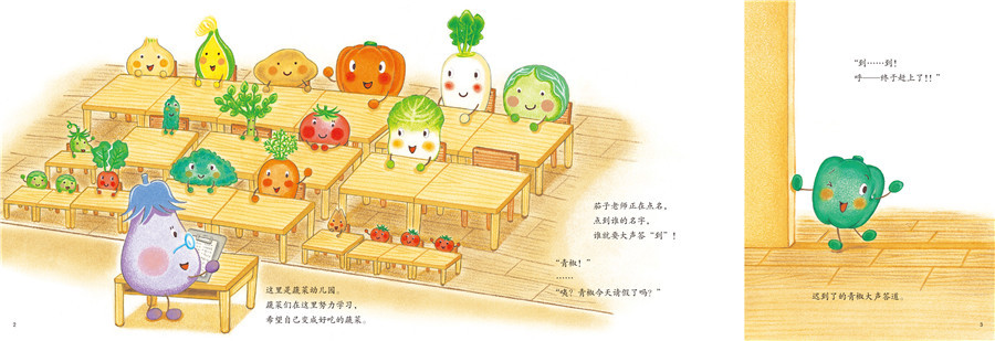 蔬菜宝宝们为了成长为好吃的蔬菜,每天都要去“蔬菜幼儿园”。上课时总是偷懒睡觉的青椒,终于下定决心要成长为好吃的蔬菜了,快努力吧!
