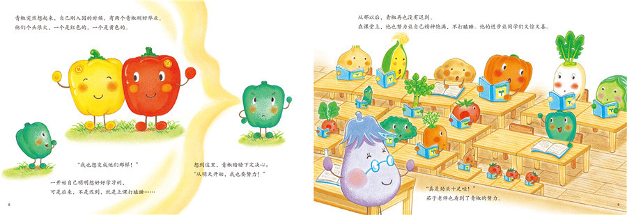 书里的这个青椒爱偷懒,上课的时候总是睡觉。它刚来幼儿园的时候,见过即将毕业的红色和黄色的又大又漂亮的青椒,于是变成它们那个样子成了青椒的梦想。为了实现自己的梦想,青椒很努力。可是过了没几天,青椒又开始偷懒了。青椒能实现自己的梦想吗?