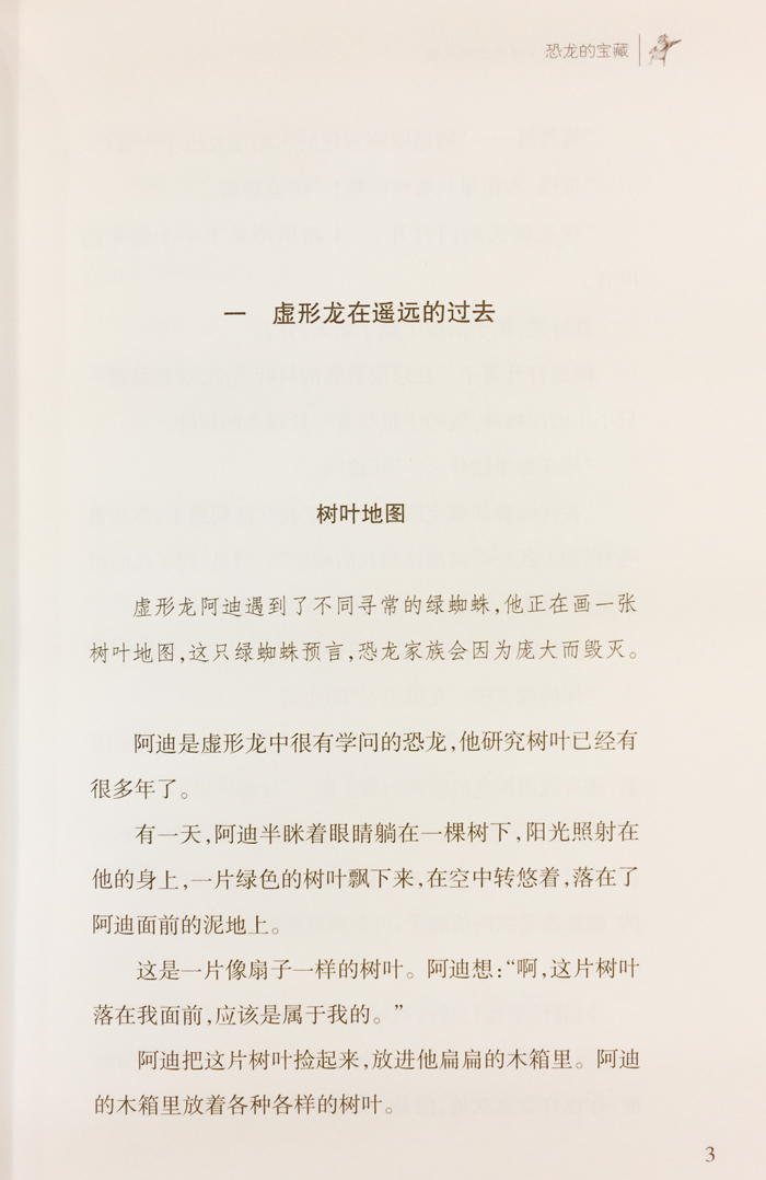 在《恐龙的宝藏》里,一只不同寻常的绿蜘蛛预言恐龙家族会因为庞大而毁灭。幸存下来的虚形龙三兄妹拿着绿蜘蛛绘制的树叶地图,去寻找恐龙的宝藏——恐龙家族的美好家园,路上遇到了很多奇妙的事情。