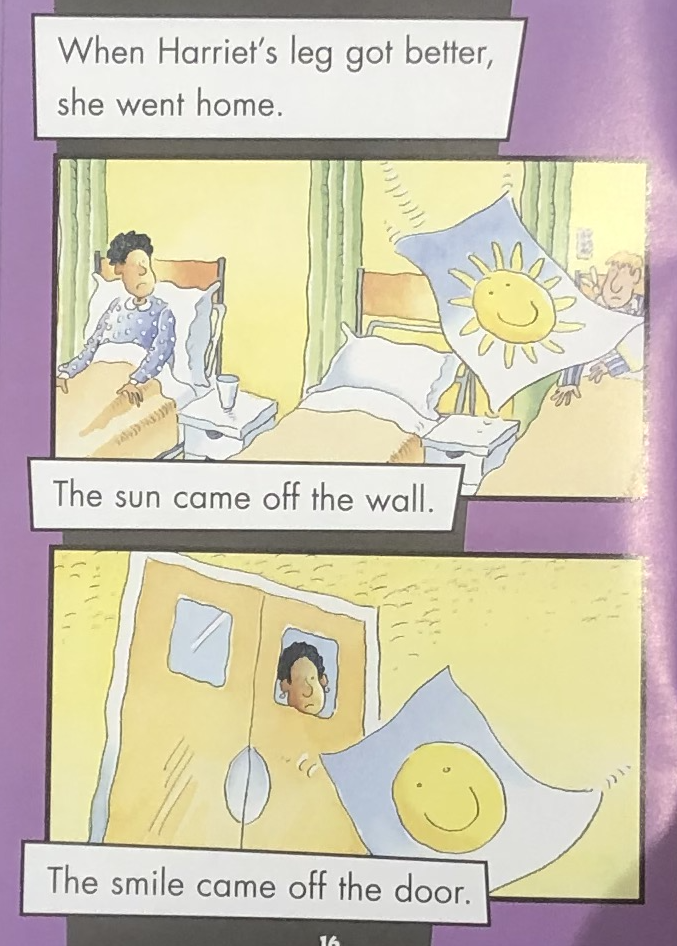 Harriet hurt her leg and go to the hospital,she makes all the people happy in the hospital。