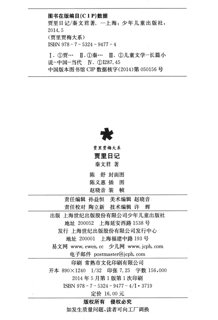 秦文君,深受千万小读者喜爱的儿童文学作家,现为中国作家协会全国委员会委员,上海市作家协会副主席,著有长篇小说《男生贾里全传》《女生贾梅全传》等五百余万字。她将儿童文学写作当成一生*美的事业,《贾里贾梅大系》是她标志性的代表作品。