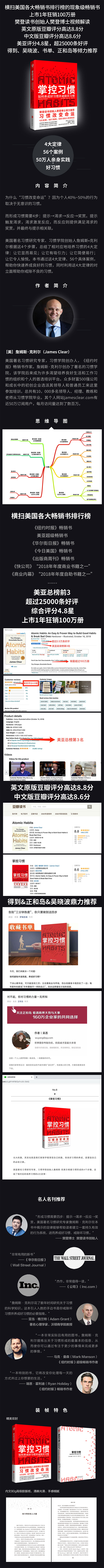 为什么“习惯改变命运”?因为个人40%~50%的行为取决于无意识的习惯。 习惯形成需要4步:提示→渴求→反应→奖赏。提示触发渴求,渴求激发反应,而反应则提供满足渴求的奖赏,并*终与提示相关联。这4个步骤一起形成了一个神经反馈回路——提示、渴求、反应、奖赏;提示、渴求、反应、奖赏——并*终让你养成自然而然的习惯,由此构成完整的习惯循环。