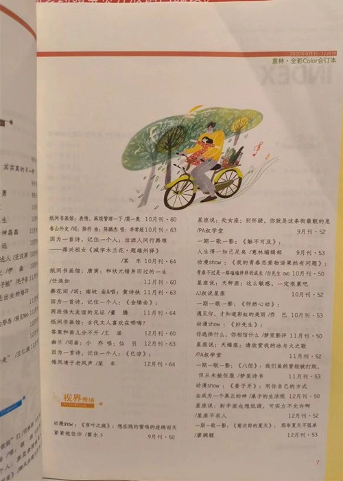 《意林·全彩color》合订本是百万大刊《意林》杂志,在原有《意林》上、下半月核心刊基础上,全新升级的《意林》第三本核心刊。它由原班人马打造,保留原滋原味的意林体励志小故事风格,更具知识含量,既有故事大家的独具性灵的文字,又有新媒体、外媒上广泛选取的深度好文,让读者思路大开,读有所获。内文采用青少年学生喜爱的流行手绘插图,独家设计,全彩印制,纸张更精美,阅读更舒心。超大容量彩页,栏目每期更换,既有知识又趣味满满,为平淡的生活增添不平凡的乐趣。