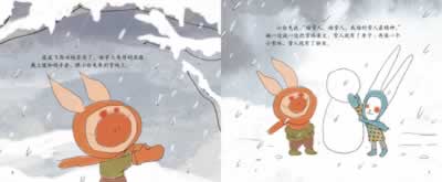 下雪了,小白兔来找波波飞出去堆雪人。小白兔滚了一大一小两个大雪球,插了一根喷香的胡萝卜当鼻子,雪人堆好啦。波波飞也滚了一大一小两个雪球,他找来一根绳子当尾巴,两面扇子当耳朵,两个大葱当长牙……哈哈,波波飞堆的不是雪人,而是一个小雪猪!波波飞真是一只有创意的小猪。
